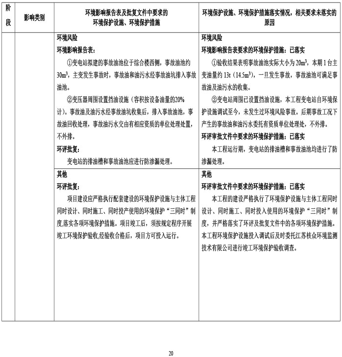 本工程施工期及环保设施调试期落实了环评报告及环评批复中提出的环保措施,做好了变电站土地硬化、回填土壤、植被恢复、绿化等工作。验收调查表明,本工程对周围生态环境影响较小。